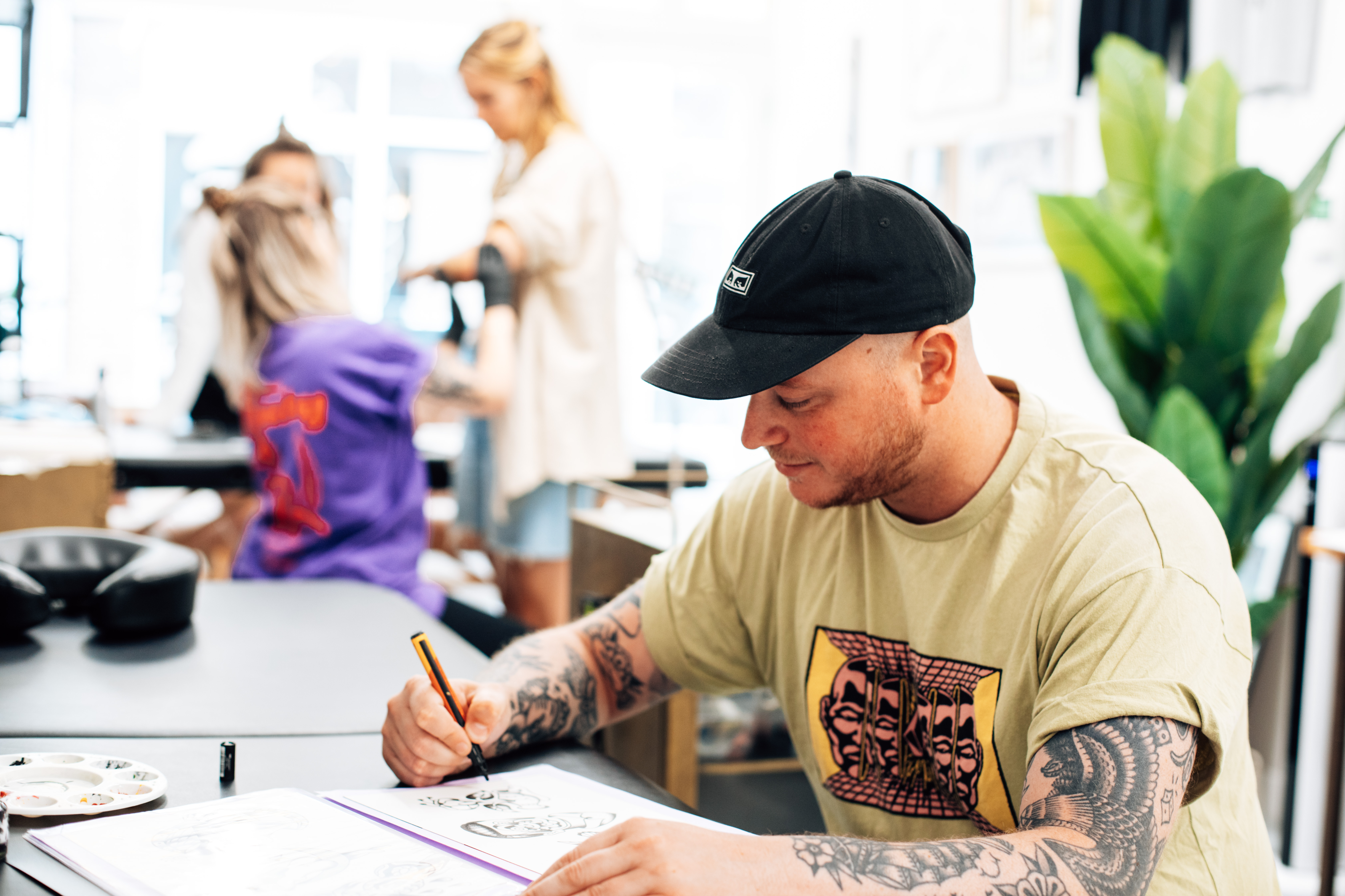 Hey hey, ik ben het, Marti! Tekenen is voor mij een vorm van therapie. Ik kan mezelf erin verliezen en het helpt me om mijn innerlijke wereld te verkennen. Mijn ontwerpen weerspiegelen wie ik ben en hoe ik de wereld zie: een mix van surrealistisch, speels, eigenzinnig en een tikkeltje magisch. Ik teken graag magische wezens en dingen, planten en vooral dieren – meestal terwijl ze iets onverwachts doen. Ik hou ervan om custom ontwerpen te maken die matchen met de energie van mijn klanten, maar ik heb ook altijd flash designs klaarstaan! Ik werk op zondag en maandag bij Studio Sailor.
