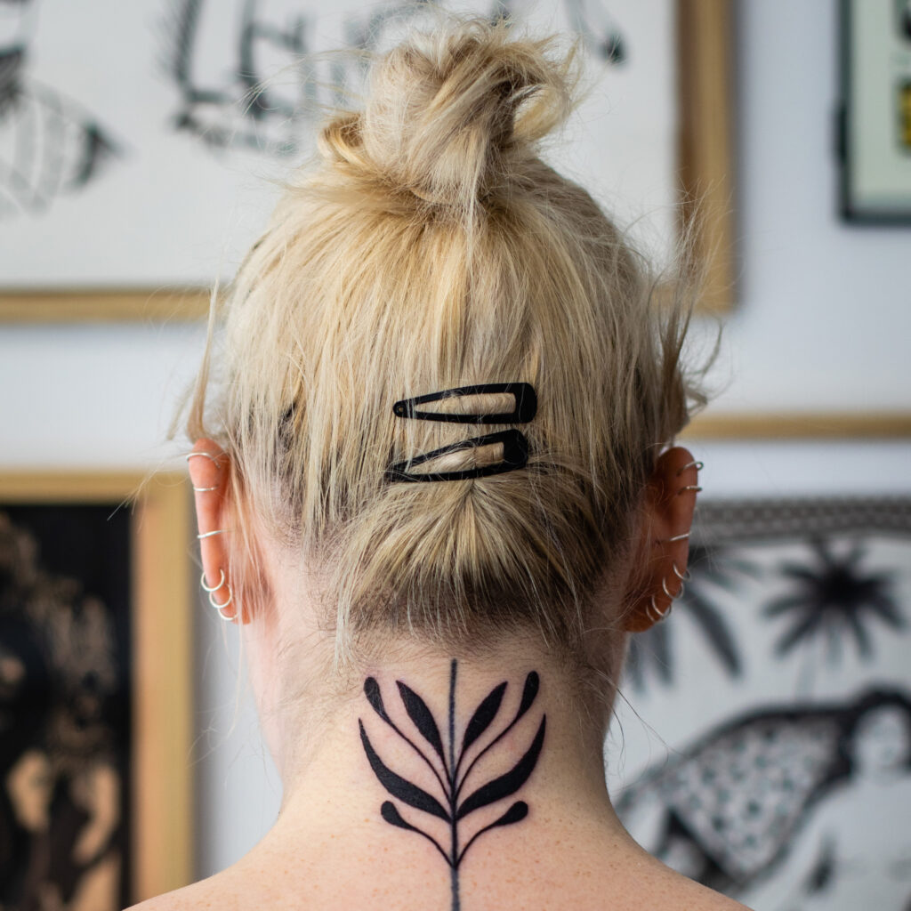 Hoi, ik ben Sophie! Mijn werk is sterk beïnvloed door Indiase en Engelse volkskunst, allemaal met penseel en inkt geschilderd. Het is levendig, karaktervol en met de hand gemaakt. Tatoeëren is voor mij echt een vorm van magie. Ik vind niets mooier dan het bedenken van organische, op maat gemaakte ontwerpen die aanvoelen alsof ze altijd al bij je hoorden. Ik werk vaak freehand en schilder dieren vol beweging, patronen en planten die zich naar het lichaam vormen en het omlijsten — evenals meer abstracte ideeën. Ik werk op zaterdag bij Studio Sailor en ik kijk uit naar je ideeën.